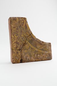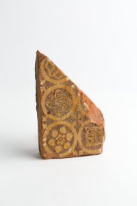 Decorated floor tile piece