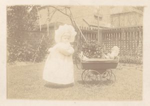 Image of child with doll's pram
