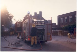 Image of firemen in Minorca Road car park, Weybridge