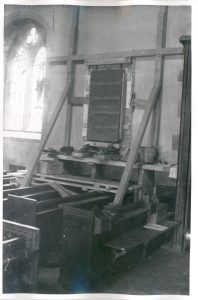 Image of the erection of tablet war memorial inside a church