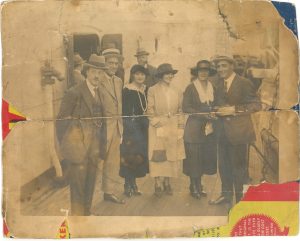 Image of Henry Edwards - film director, Alma Taylor, Miss Weston - Secretary, Chrissie White, Mr Kimberley and Cecil Hepworth