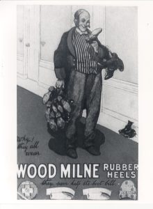 Image of a postcard advertising "Woodmilne Rubber Heels"